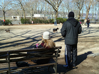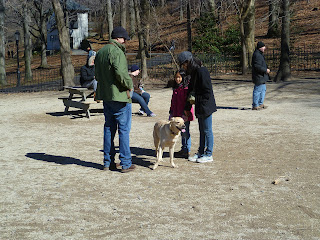 On my run this morning, backdropped by awesome views of a golden jersey shore, glinted highlights from parked barges on the Hudson, storage containers, and windows, I passed more dog walkers than runners. I then remembered an interesting point Carl Skelton made during my final fall semester thesis critique (round-table style) in 2009 as we delved into the many intangibles affecting the lives of public places, i.e. “the politics of public space.” He mentioned that a good indicator of if a person is a member of his local community board, voting on important decisions or not, is whether he/she owns a dog. Dogs are an obvious status symbol: as Charlotte said, you’re spending a ridiculous amount of money on something that does little more than eat and shit. But on a subtler level, you are forced into free time. Dogs are an accessory to leisure– and you have to set time aside to take it to the dog run and watch it socialize while you sit and watch– or, as apparently happens, chat with your fellow doglovers and come to executive decisions regarding that pothole on 96th street, the closure of that bodega on Columbus, or the next kids’ soccer tourney at Neville Colman Field.