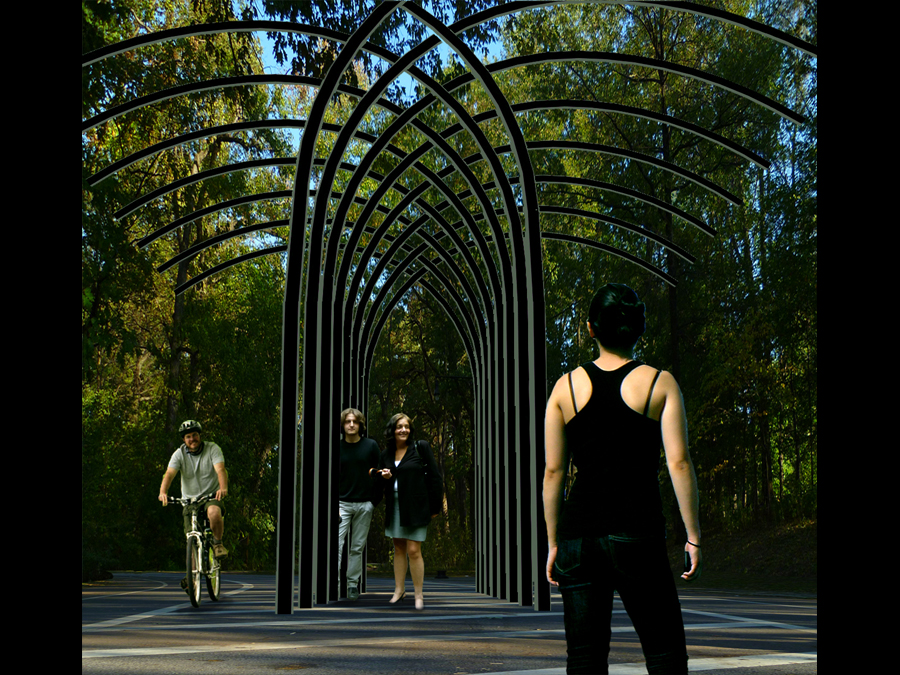 The project takes an unconventional approach to the concept of "gateway" in response to one qualm: how does one make a gate that simultaneously blocks and discreetly invites traffic? These arches much prefer the latter.