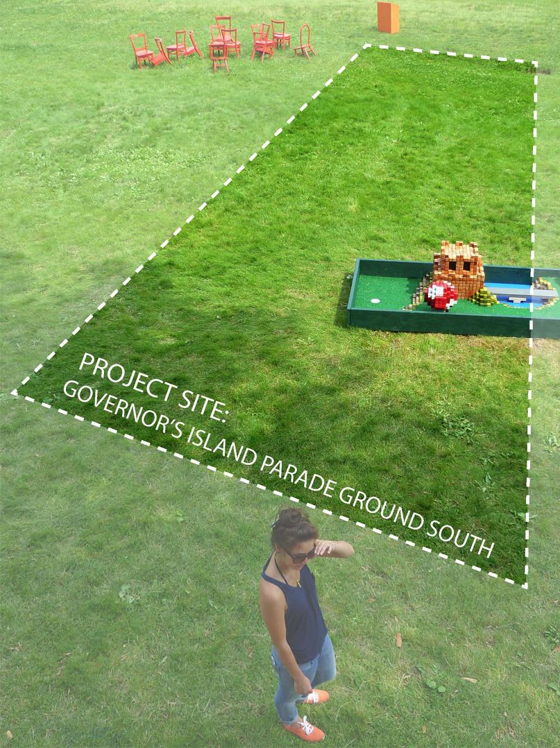 Competition entry for SUPERFRONT's 2012 Public Summer Competition. The competition's program, "a Library of Immediacy," calls for a temporary pop-up library to be built on Governor's Island Parade Ground . The architecture is to be cheaply-built, quick to erect and disassemble, and must promote the congregation of people around books.