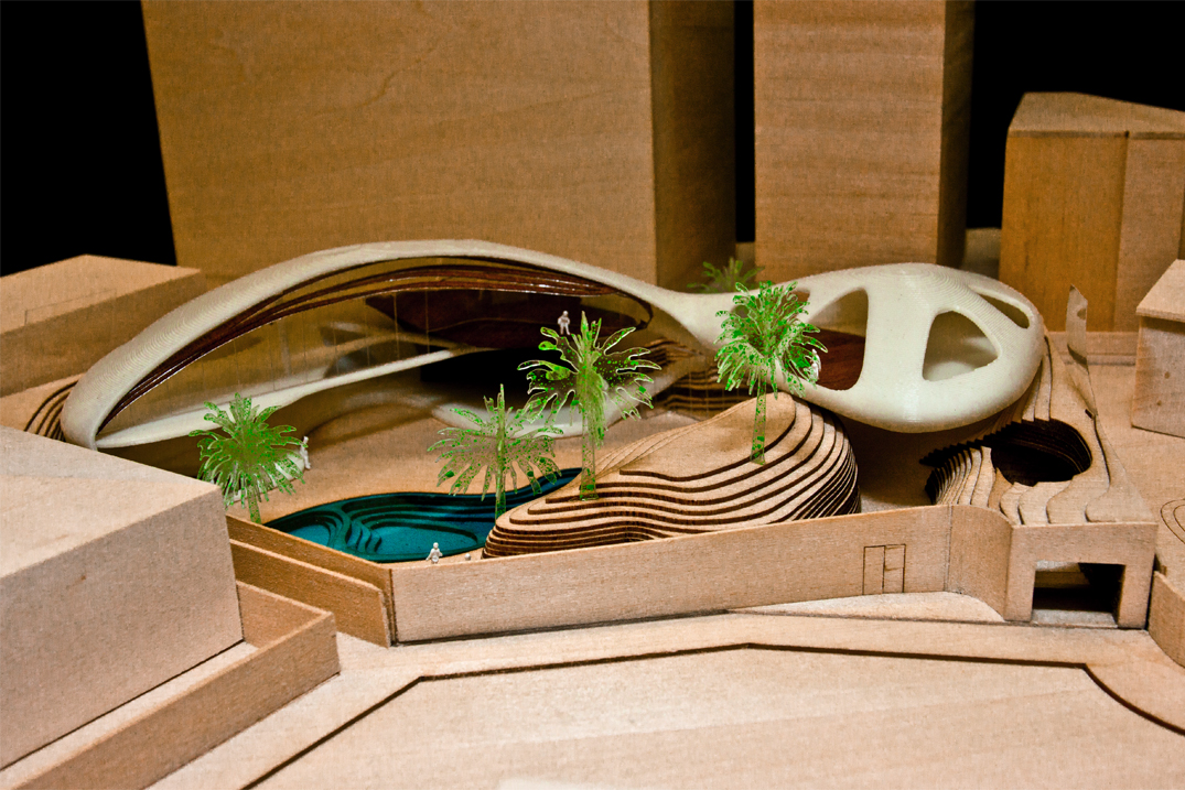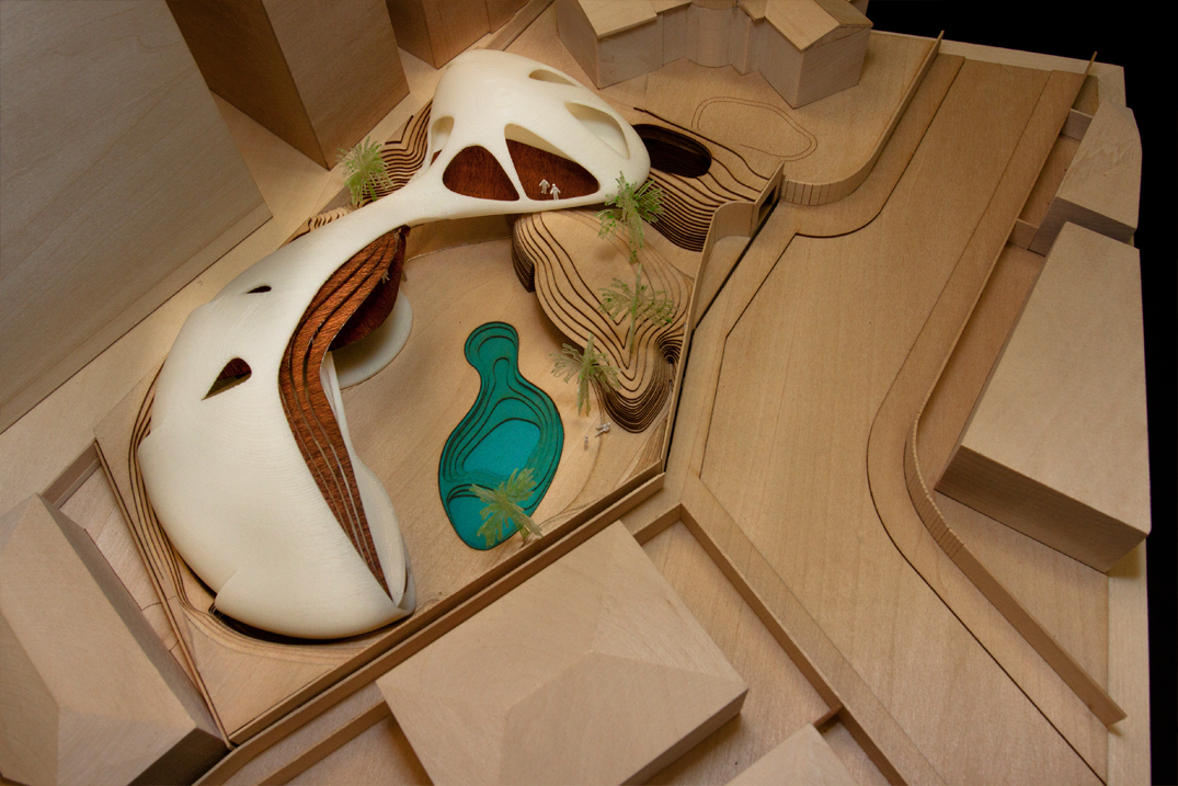 Model constructed of basswood, balsawood, acrylic, 3D-printed ABS, polystyrene, spraypaint.