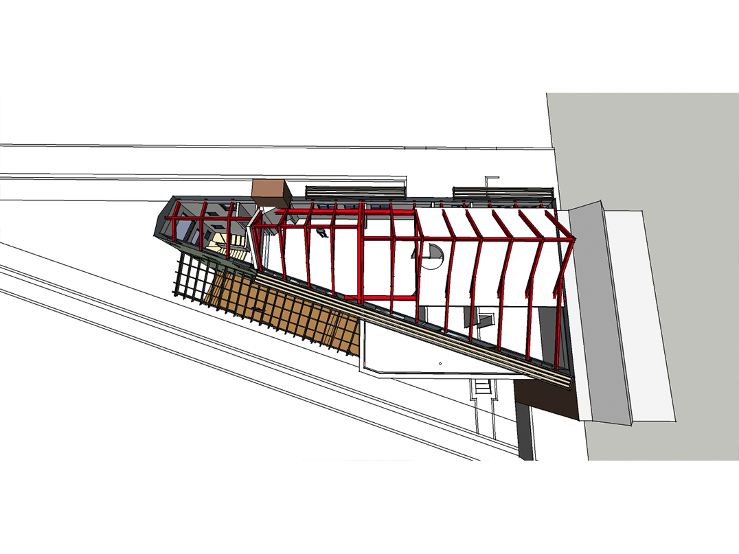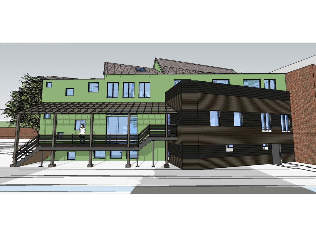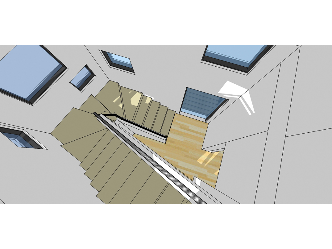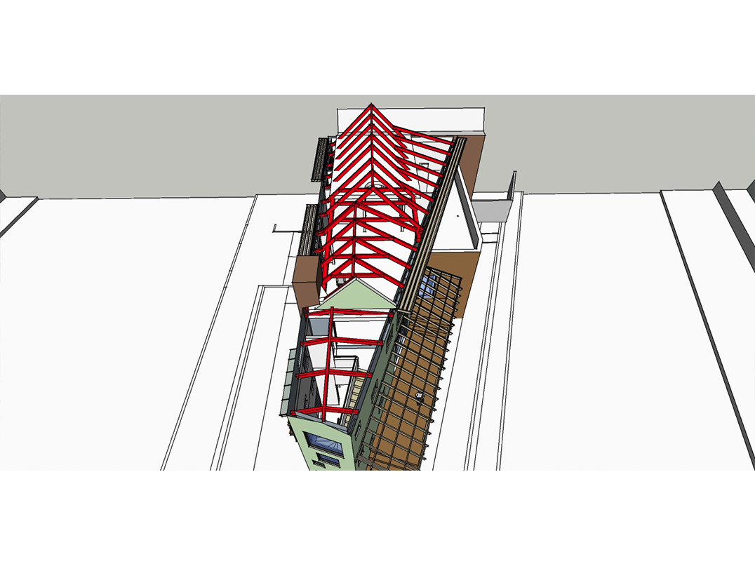 I assisted in modeling this new two-family townhouse in Sunnyside, Queens. Of particular note is the gabled roof, whose ridge is not parallel to one of the eaves. This results in one side of the gable being subtly ruled, or non-uniform.