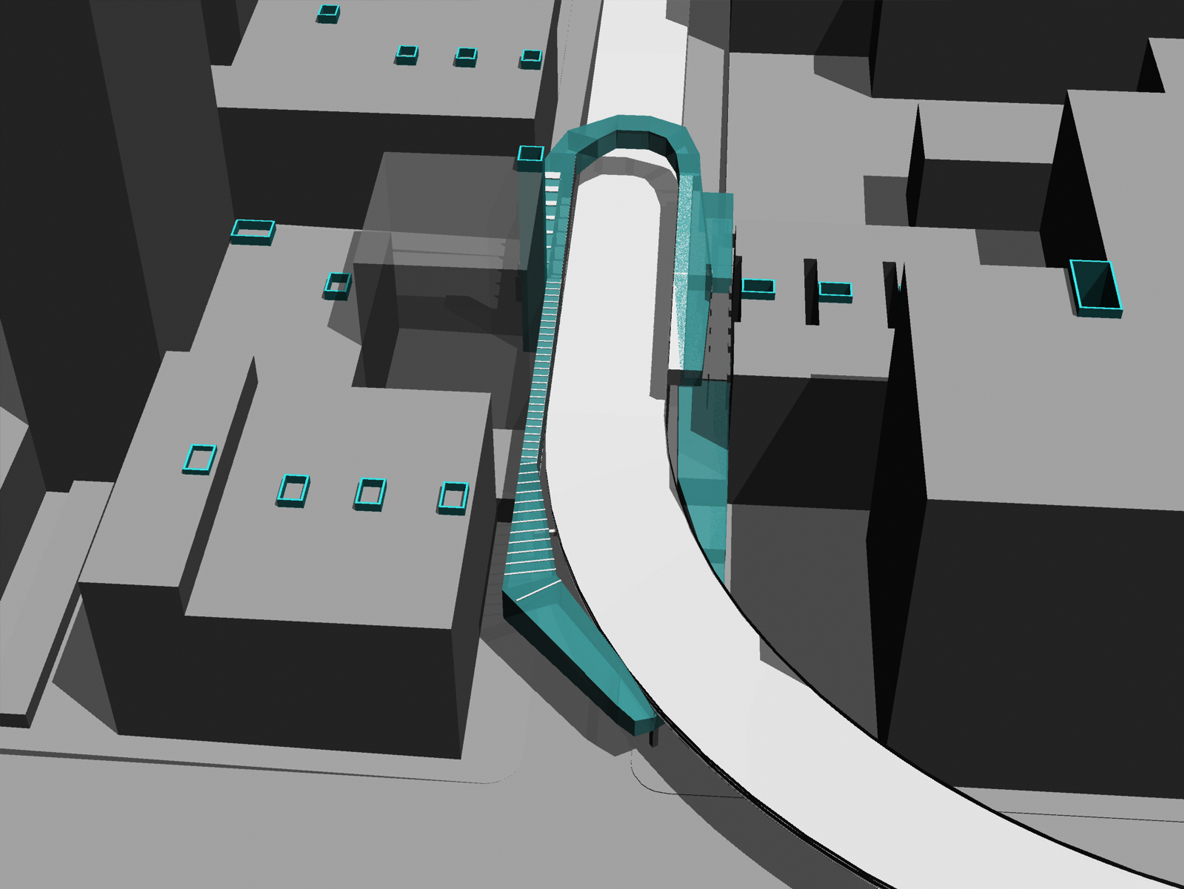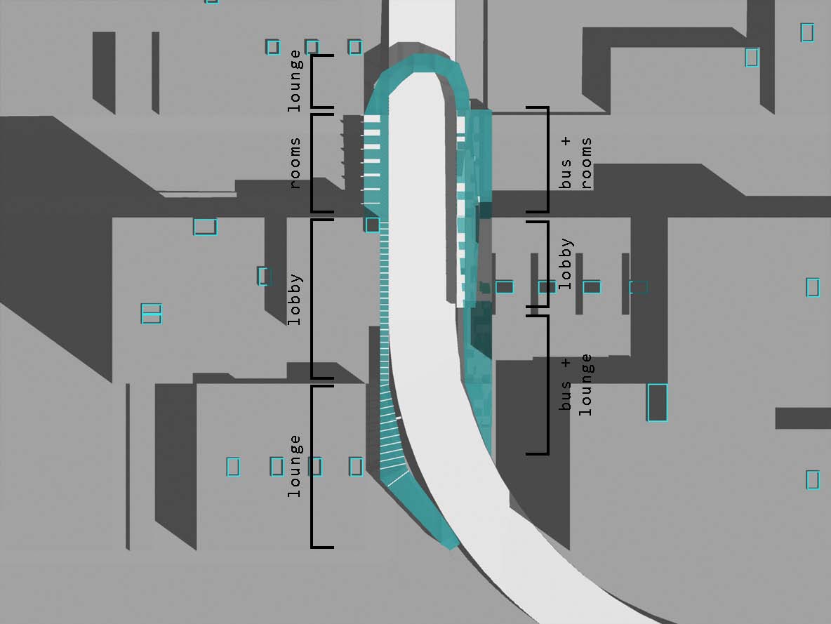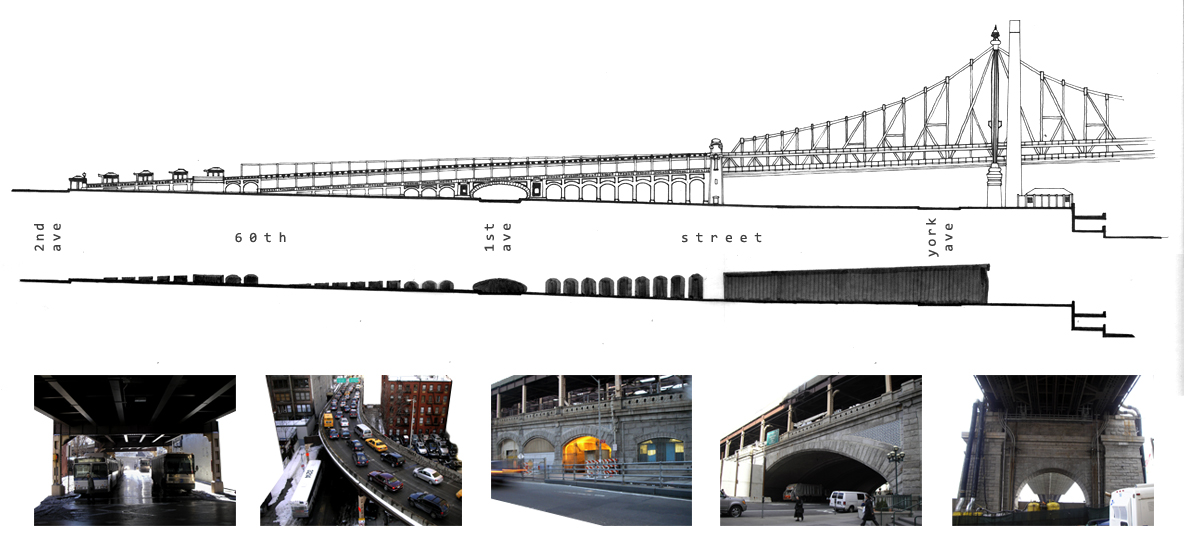 The site at 60th Street between 1st and 2nd Avenues is a powerful gateway connecting people and cars. As the offramp from the Queensboro Bridge cuts through the street it juxtaposes the human domestic scale and the vehicular urban scale. This tenstion was one I wanted to amplify. A hotel for buses and people emerged as the program.